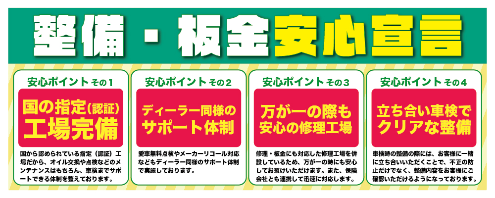 2025/7/3 【休業のお知らせ】 7月4日(金)は社員研修の為、休業とさせていただきます。お車の急な故障・事故などは任意保険付帯のロードサービスやJAFをご利用ください。尚、7月5日(土)より通常営業となります。ご迷惑をおかけしますがご理解のほどををよろしくお願い致します。